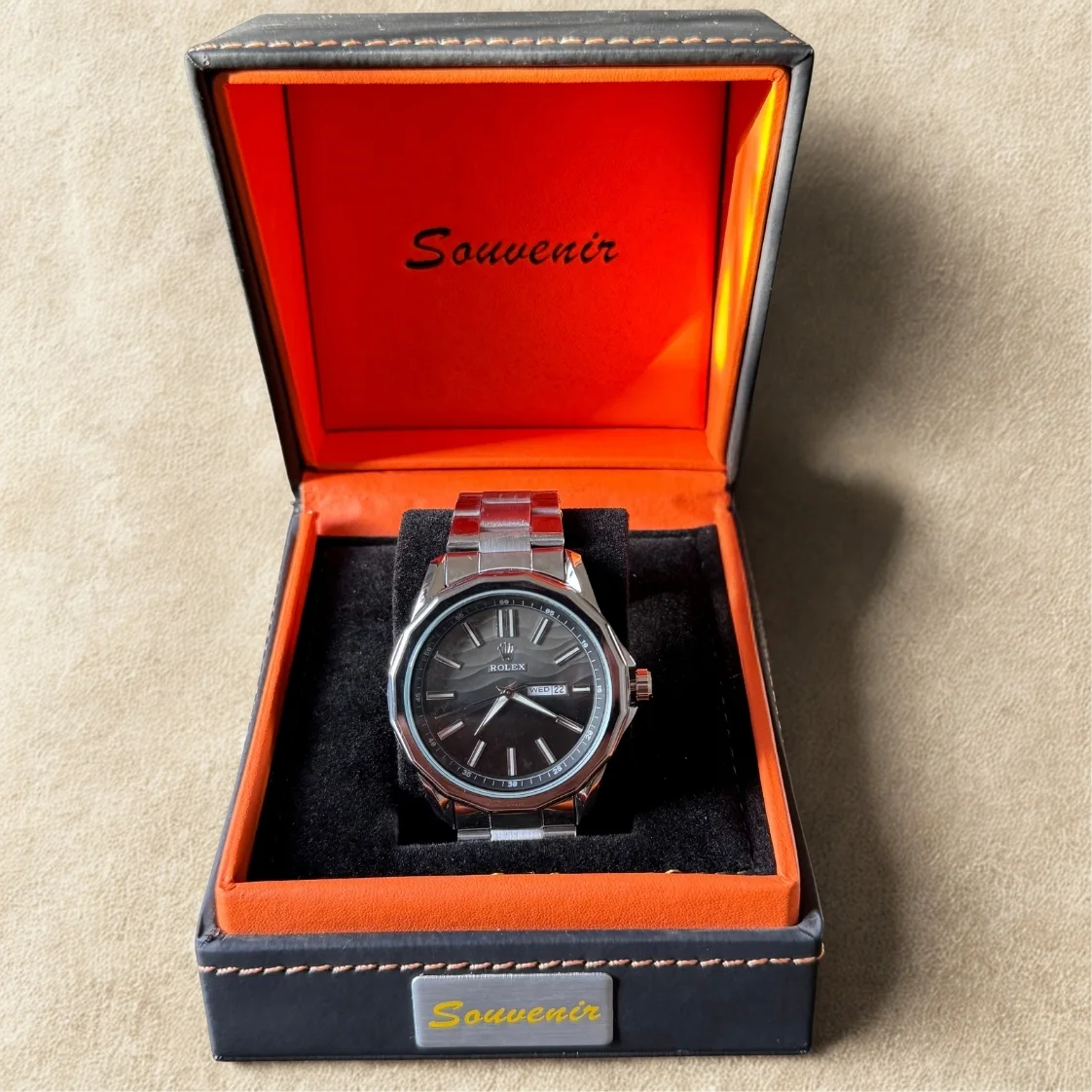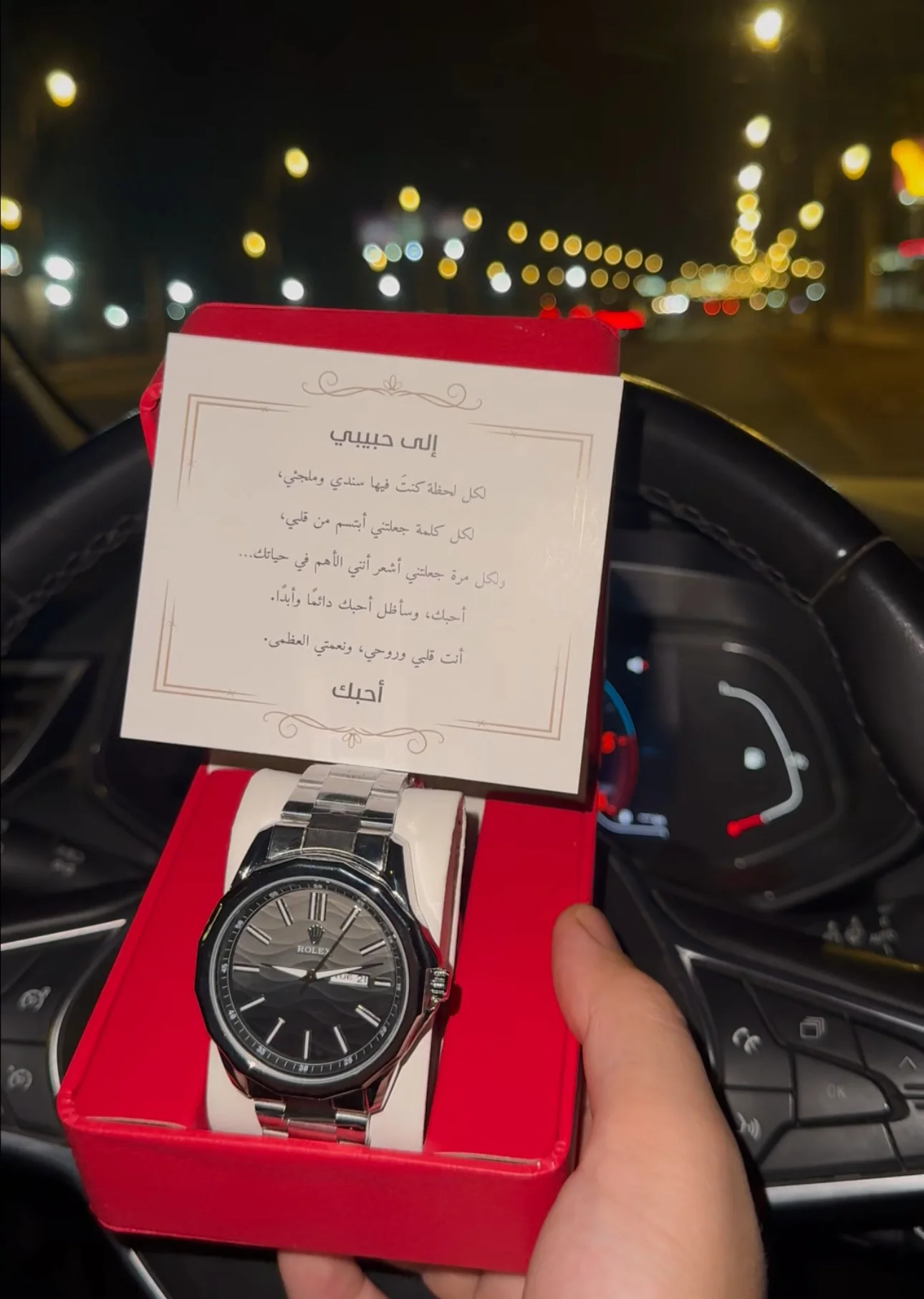 ساعة رولكس فاخرة مع بطاقة إهداء رومانسية بعنوان "إلى حبيبي"